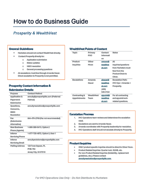 Prosperity Life Group has engaged WealthVest Marketing Inc. to wholesale products underwritten by the Member Companies.
