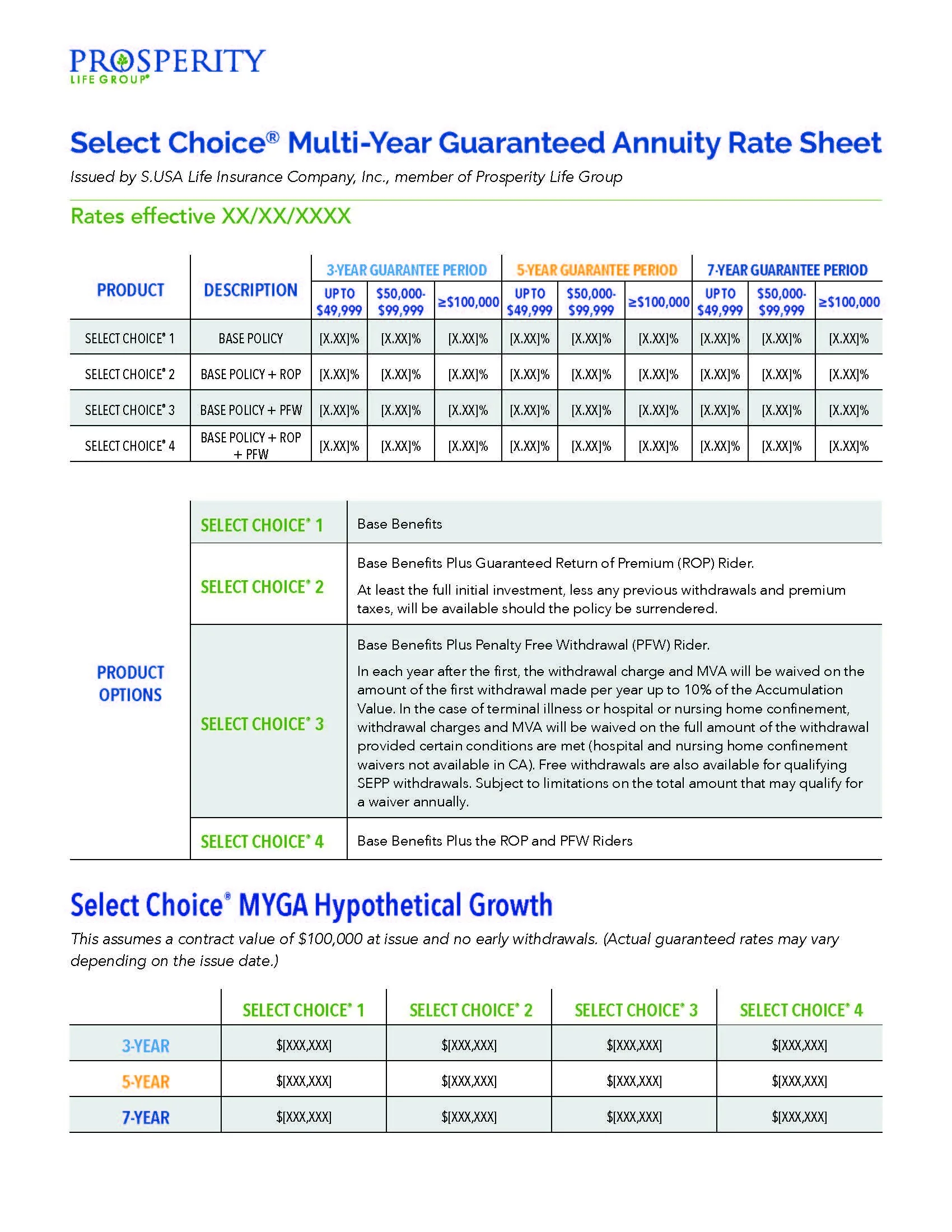 Rates subject to change. This is a very general description of certain features of the Select Choice products. Consult your agent for more information about the contract terms, conditions, limitations, and exclusions.